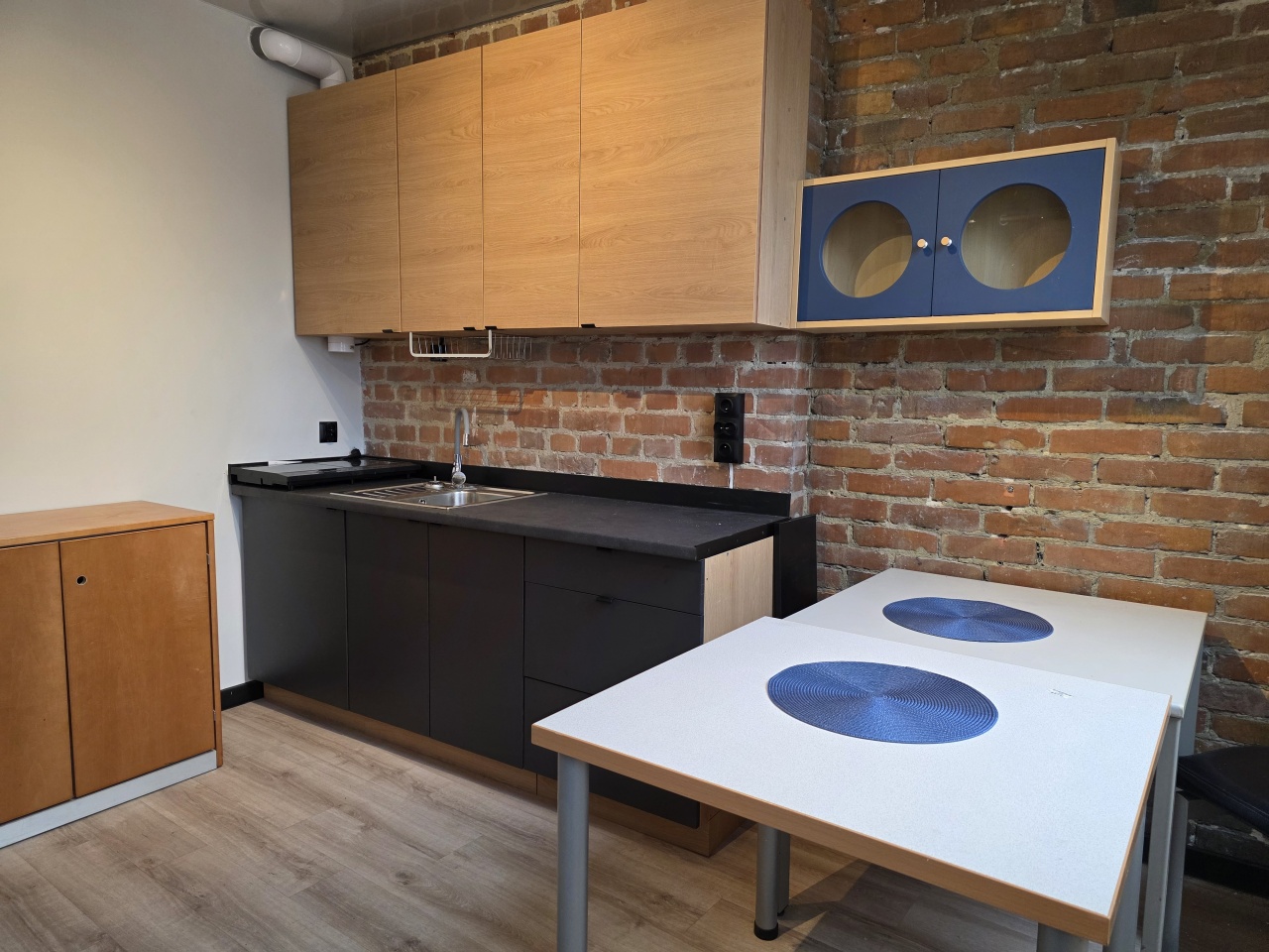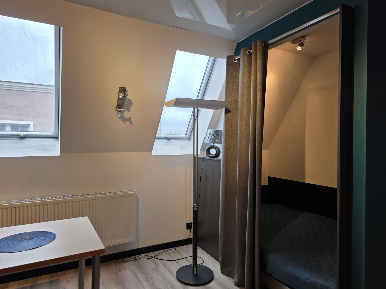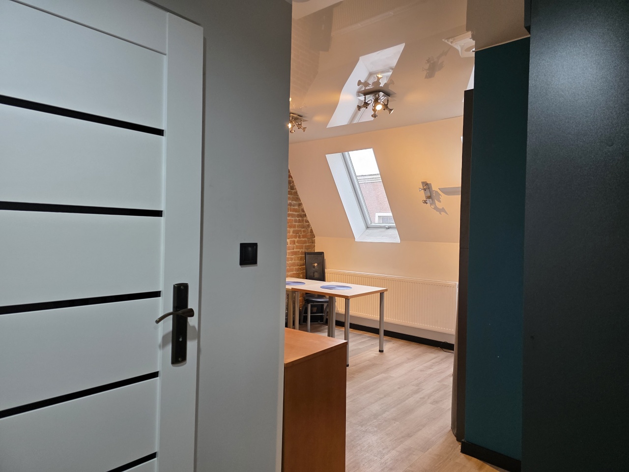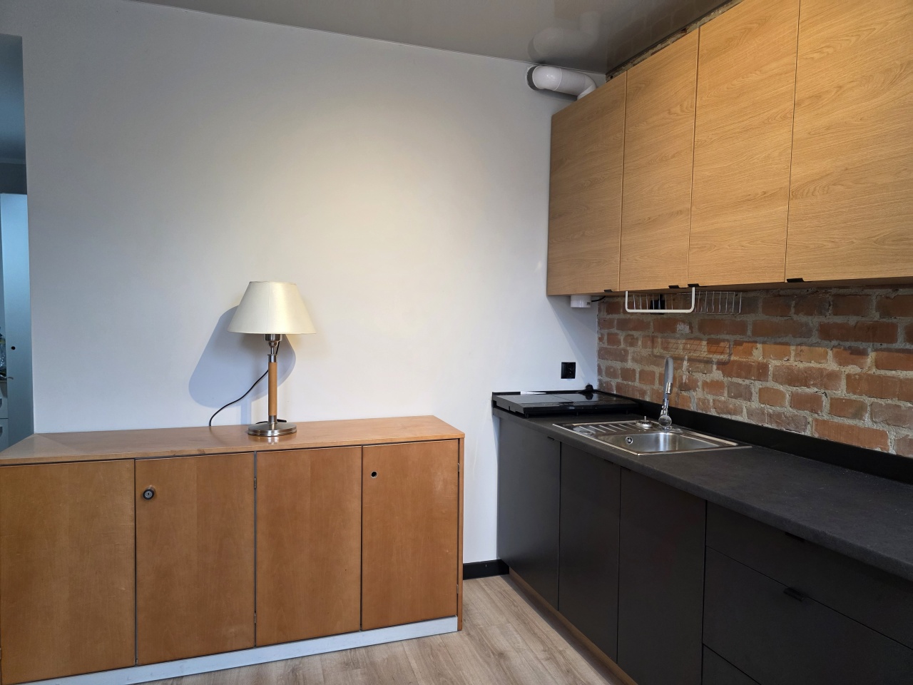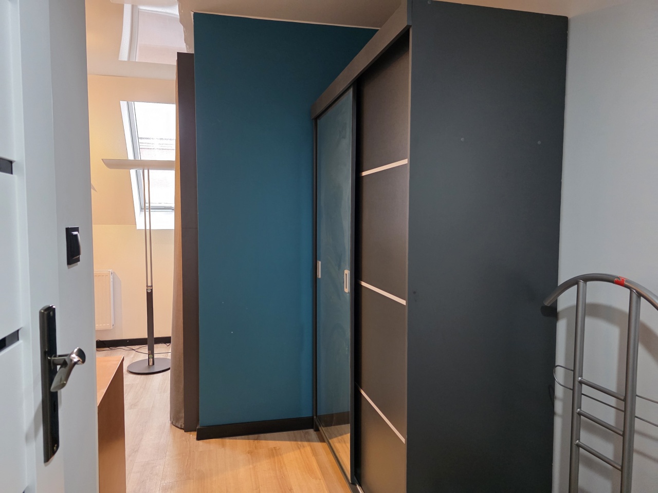 Mieszkanie typu studio, o pow. 30 m2, wyposażone i umeblowane, składa się przedpokoju i otwartego salonu z aneksem kuchennym i wydzielonym miejscem na łóżko sypialniane.