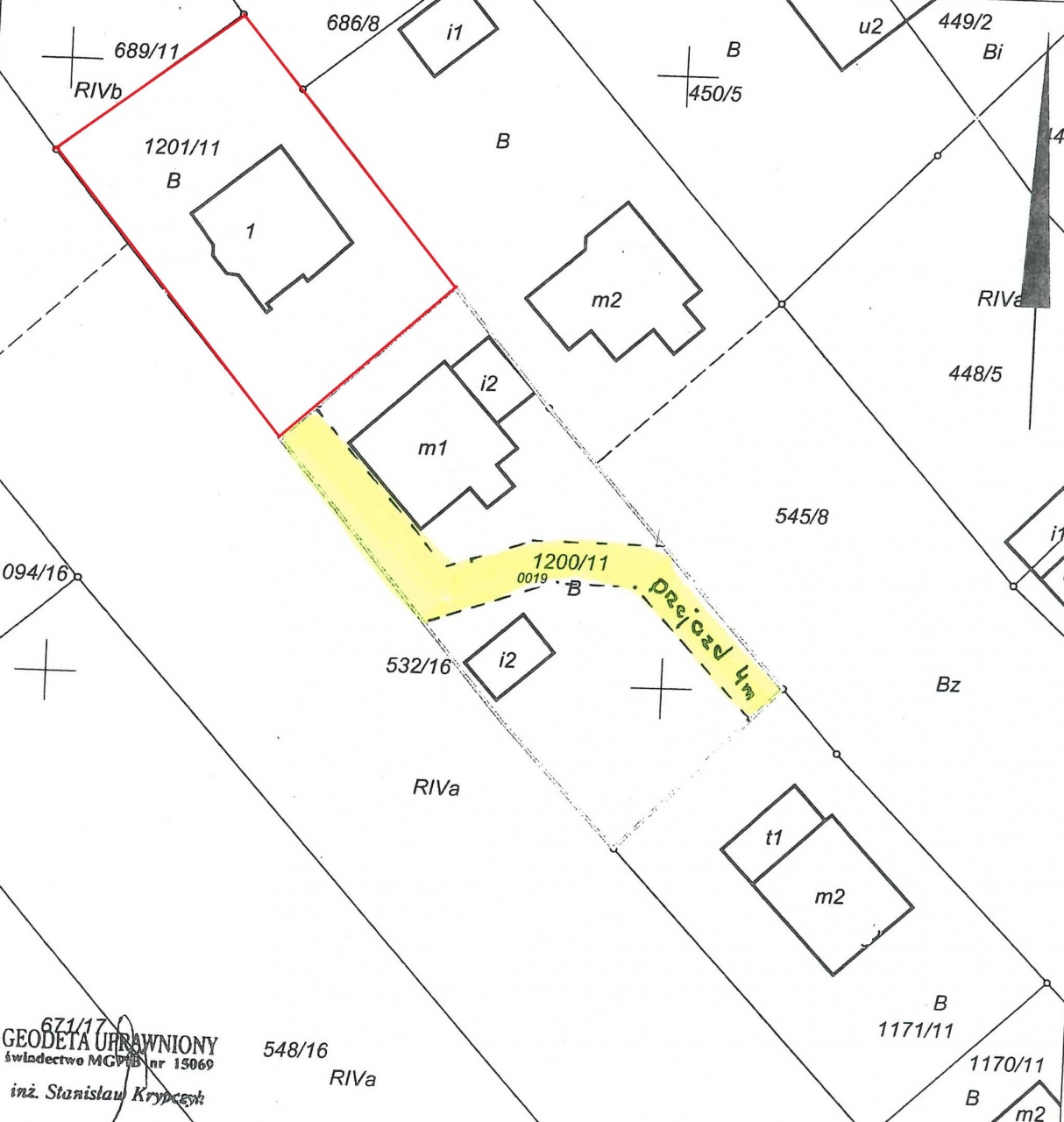 - Dojazd ustanowioną służebnością drogową o szerokości 4 metrów