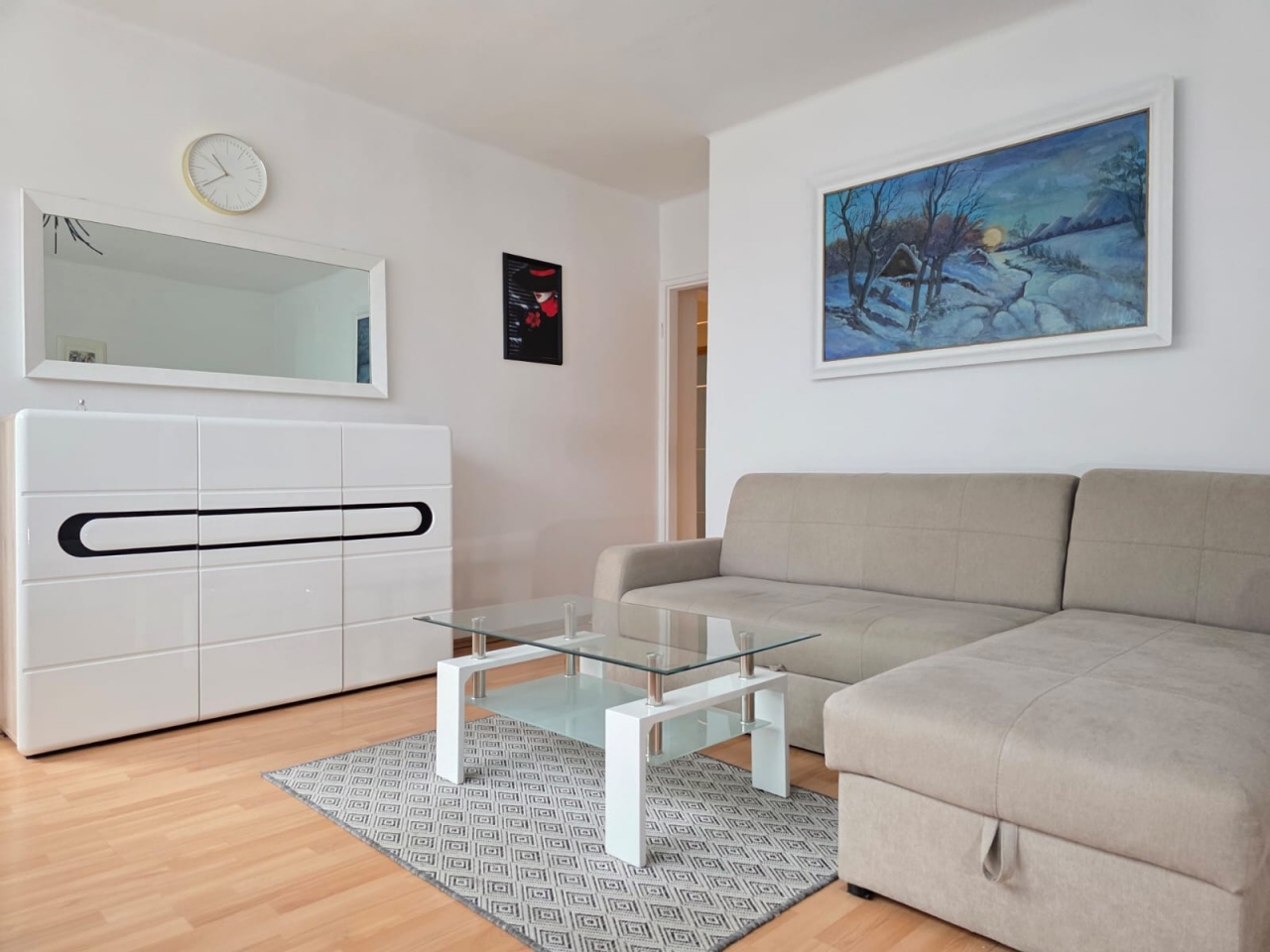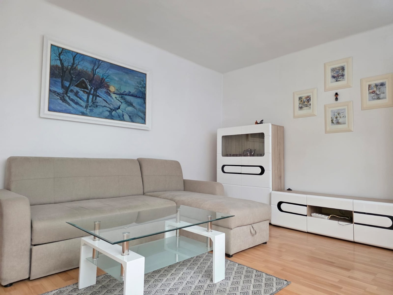 - na podłogach panele i kafelki